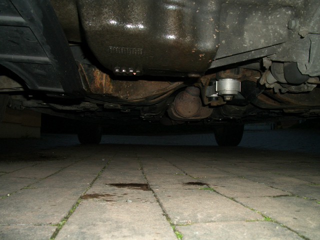 Da ich so gerne Bilder von den "intimen" Stellen meines Autos mache, habe ich das jetzt wieder getan, allerdings nachdem ich damit gefahren bin und die Pfütze natürlich erst einmal weg war.