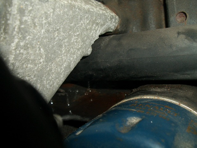 Über dem Ölfilter läuft ein Rohr/Schlauch entlang und am Ende davon hatte ich meines Erachtens eine kleine Pfütze entdeckt.