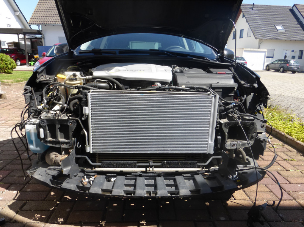 Ich habe die Tage den Kondensator der Klimaanlage gewechselt, da der Alte gemäß Boschdienst undicht ist und dadurch das Kältemittel verliert. Ich habe dazu wie im Dialogys beschrieben die komplette Front soweit demontiert.