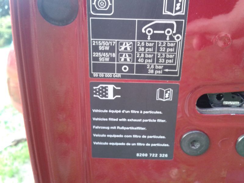 Reifendruck Angabe 2.0 dci Grandtour 2008