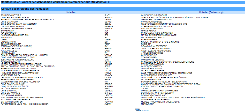 Ich habe von Renault das Datenblatt zu dem Fahrzeug angefordert. Die aufgeführten Nummern sagen mehr aber leider nichts und mit googeln wird man auch nicht unbedingt schlauer.