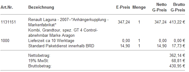 Hab den Satz von kupplung.de gekauft, ist eine Westfalia, mit E-Satz und Versand ca. €430,-.