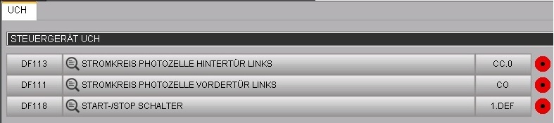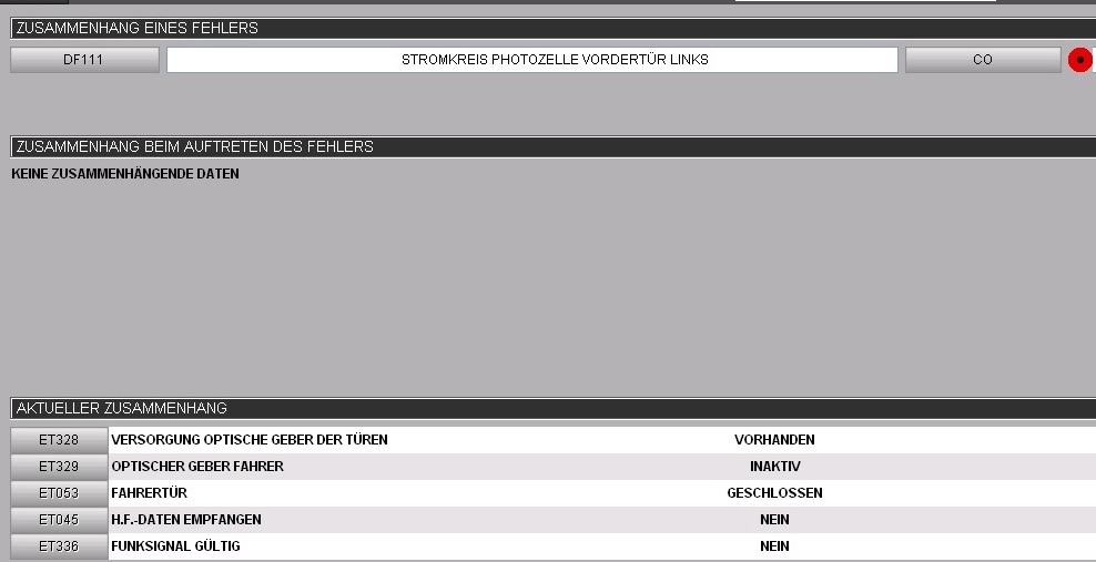 Als Fehlermeldung ist DF111 hinterlegt (Stromkreis Photozelle Vordertür links):