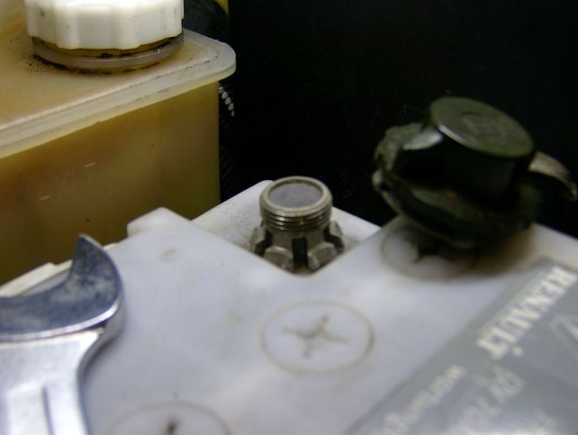 Das Bild ist von einem anderen Renault. Bei mir ist nur links am Pluspol dieser Gewindeaufsatz.