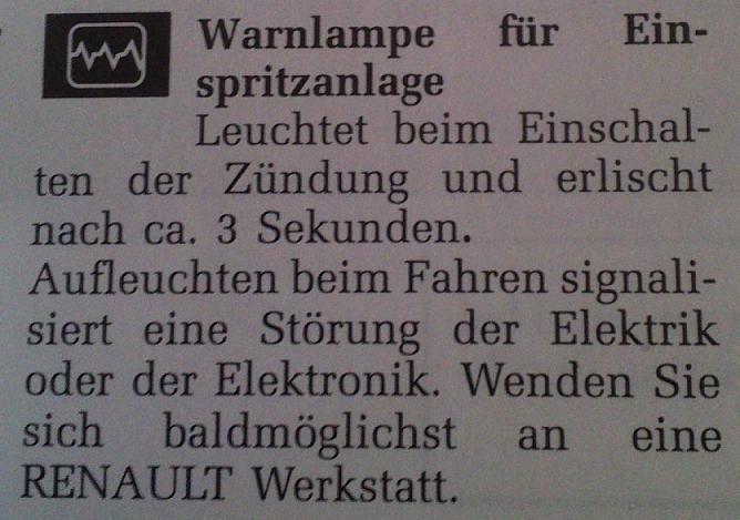ist mein erster laguna leider auch ohne hand buch es leuchten serv und so ein zeichen recht eck mit so einer art blitz drinn dauer haft auf. und der sprit verbrauch ist erheblich hoch.