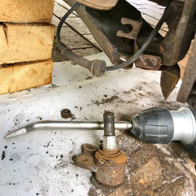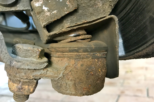 Der Vorbesitzer hatte offenbar den Kugelkopf bereits gewechselt. Keine Nieten, sondern verrostete Schrauben. Gut soweit.