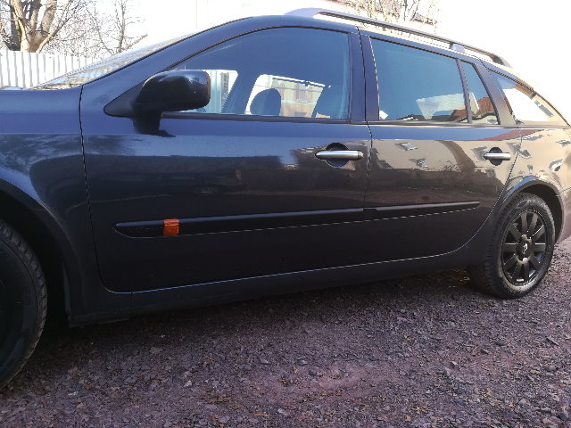 Lackiert sind nun der Kühlergrill, die Zierleisten vorn, die Zierleisten hinten, die Renault-Rhomben, die Zierleisten in den Türen, die Abschlussleiste der Heckklappe und die Winter-Alufelgen... ;) Die Dachreling kommt im Sommer dran...