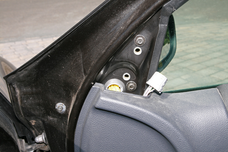 wie versprochen, melde ich mich noch mal. Die "Operation" war ein Erfolg. :) Die Plastikabdeckung ließ sich gut entfernen, genau wie der Stecker zum Spiegel. Die drei Schrauben waren gut zugänglich. Der Anbau des neuen Spiegels war damit problemlos. Unten Paar Bilder, vielleicht helfen sie jemandem:
