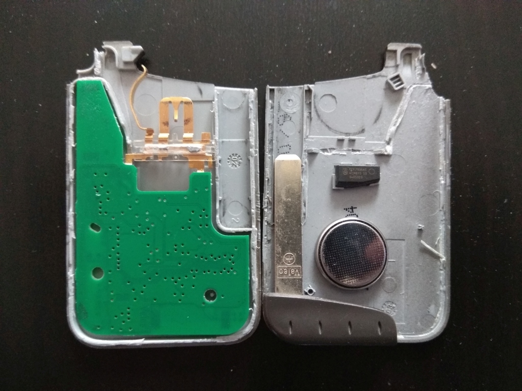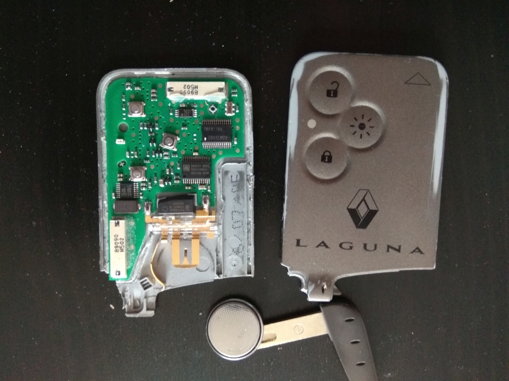 Das ist die Batterie, die die Karte selbst mit Strom versorgt, um eben ein Signal zum Öffnen/Schließen des Wagens zu senden.