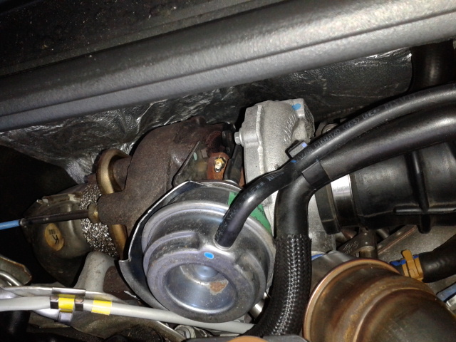 Das Schubumluftventil sitzt am Turbolader. Es sitzt direkt zwischen Turbolader und Zylinderkopf, in Fahrtrichtung links.