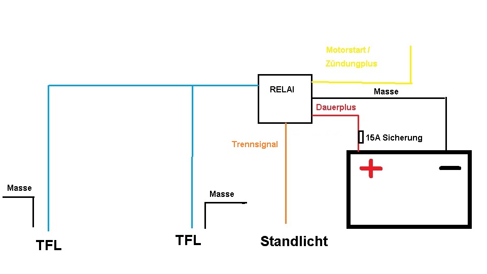 Ok, also du schaltest die TFL übers Relais an.