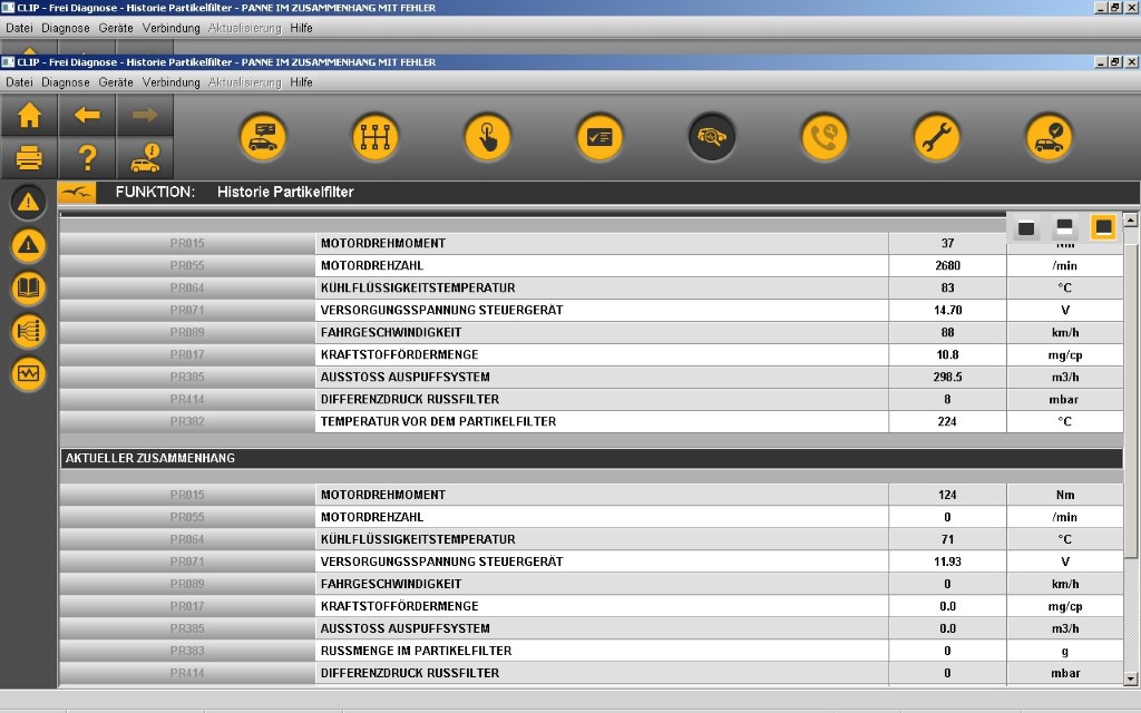 Habe jetzt folgende Auswertung durch Clip Can bekommen (Bild3). Schaut man unter dem Punkt "Russmenge im Partikelfilter" steht da 0 g, sieht also für mich so aus als wäre er leer und das nicht die Ursache für das Problem.