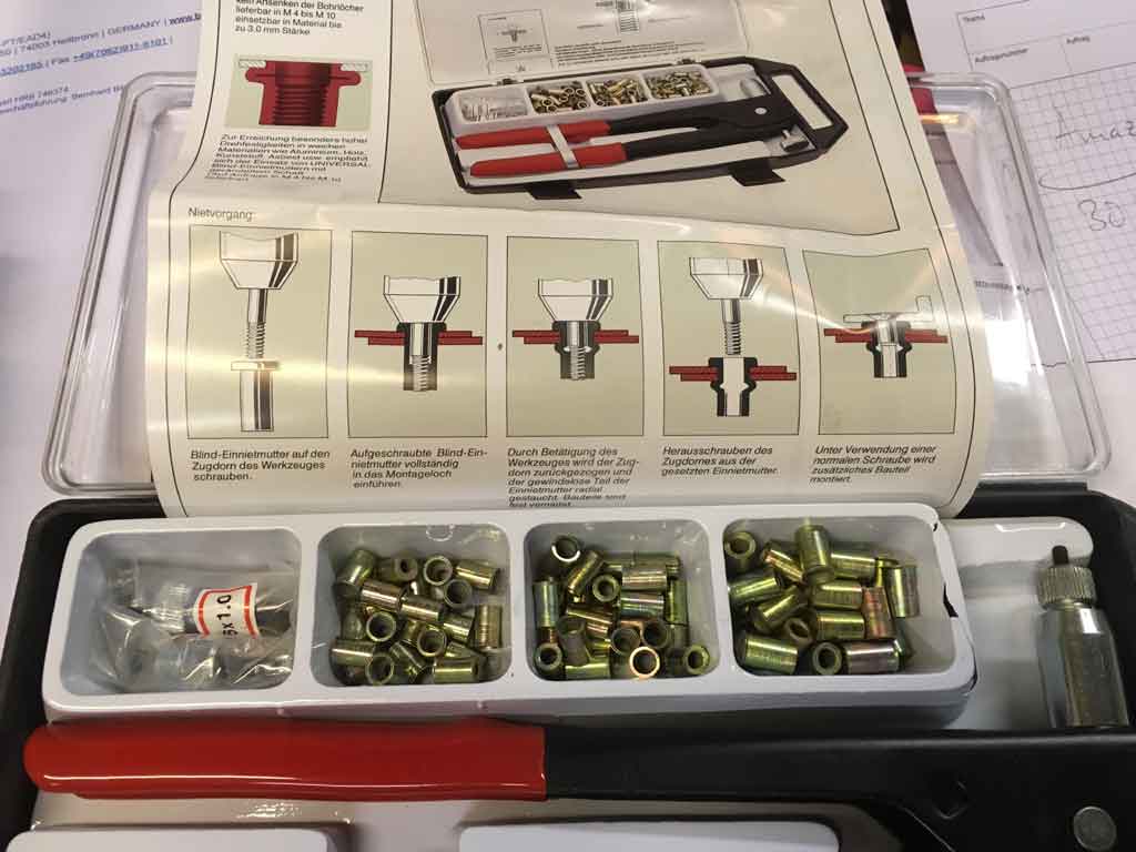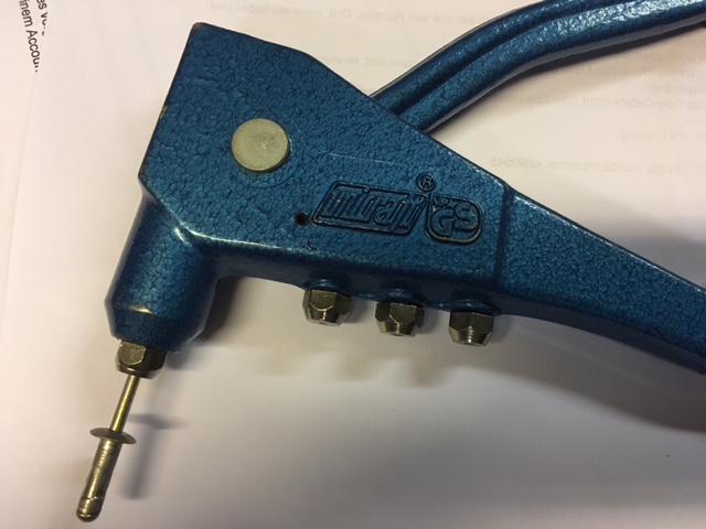 Meine handelsübliche Nietzange kann 5mm-Blindnieten verarbeiten (siehe Foto).