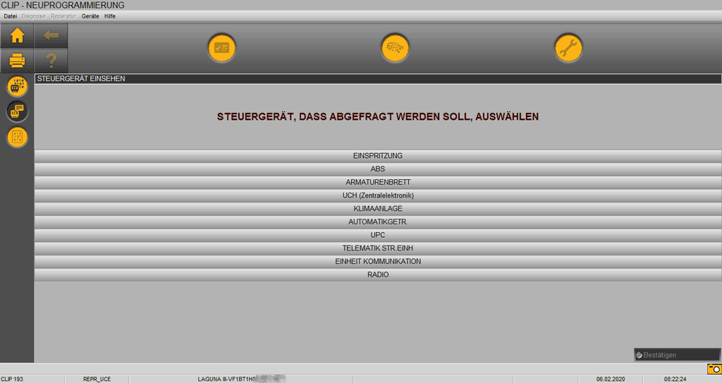 Und diesen Befehl kannst du nur mit renault Zugang ausführen, da der Clip ne Verbindung zu den Servern aufbaut und sich die nötigen Informationen holt und das aufspielt.