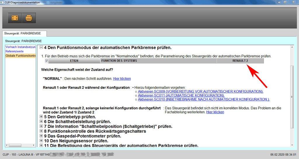 Alle Punkte bis auf „4 Den Funktionsmodus der automatischen Parkbremse prüfen.“ sind OK.