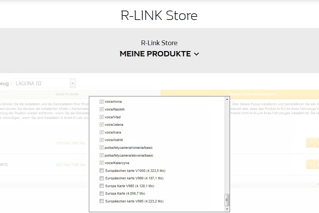 In Myrenault die Karte abwählen und Einstellungen übertragen, dann mit der R-Link Software auf dem Rechner synchronisieren.