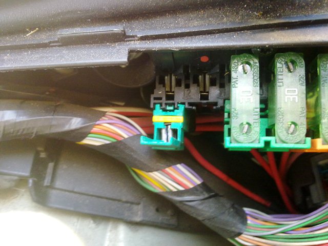Nachdem ich den Filter nach vorn versetzt hatte, habe ich mich ans Kabel legen gemacht erstmal die Original Sicherung eingepinnt und das 2,5 mm²Kabel zur Beifahrerseite gelegt. (so das man es nicht gleich sieht).