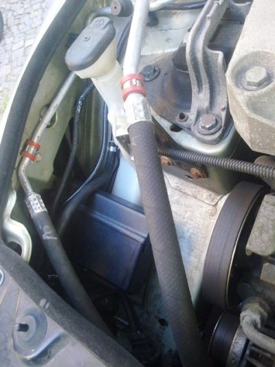 Danach habe ich den Wischwasserbehälter eingebaut und alle Pumpen angeschlossen. Vorher habe ich mir von der Scheibenreinigung das + Kabel am Wischwaschmotor gesucht (Grau/ Weiß). Das benötigt man zur Steuerung.