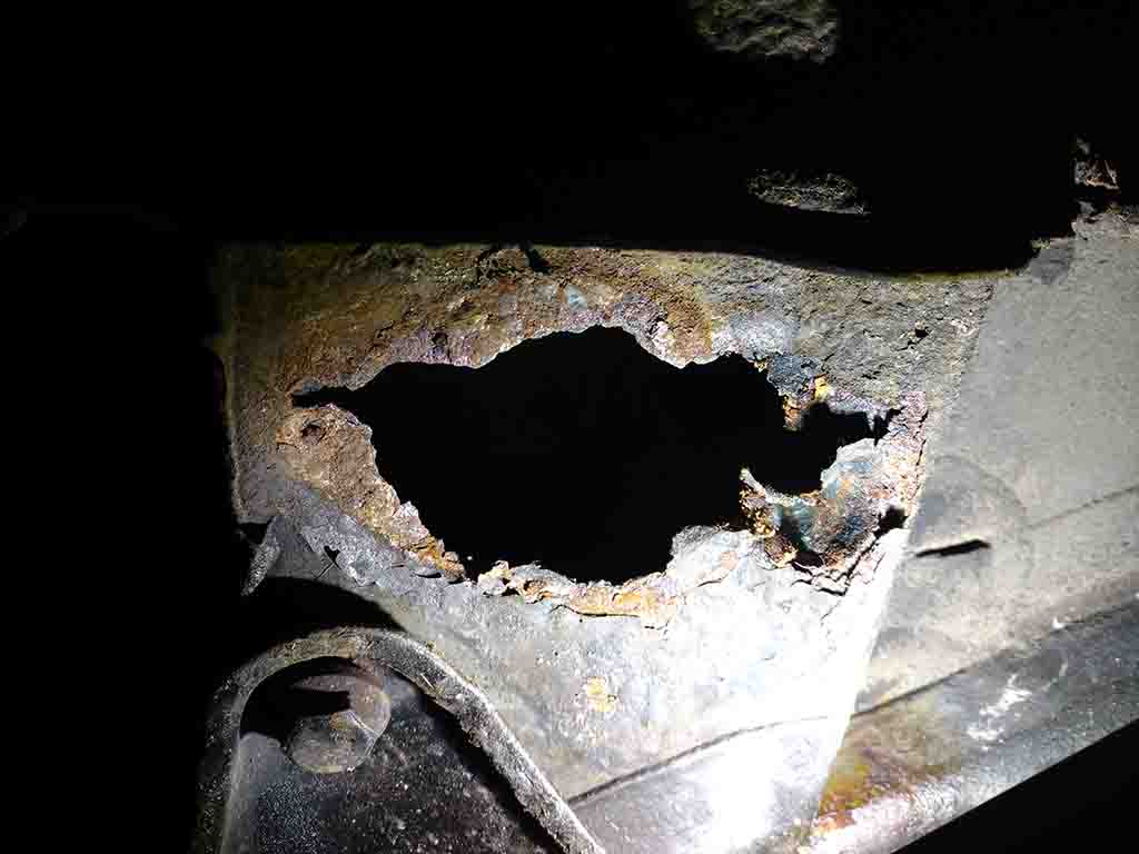 Naja. Auf jeden Fall will ich das Loch gerne wieder zuschweißen und mir dafür ein passendes Reparaturblech besorgen. Laut meiner Reparaturanleitung heißt das Teil "seitlicher Querträger vorne (li)" und sieht aus, wie auf dem Bild unten.