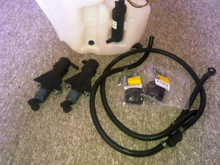 die normale Wisch-Wasch-Anlage hat zu wenig Druck, um die Düsen auszufahren, die sind Federbelastet und die Verschlauchung zu den Düsen ist etwa so groß, wie bei nem Gartenschlauch, also etwa 3-4x so groß wie die normalen Schläuche der Scheibenreinigung