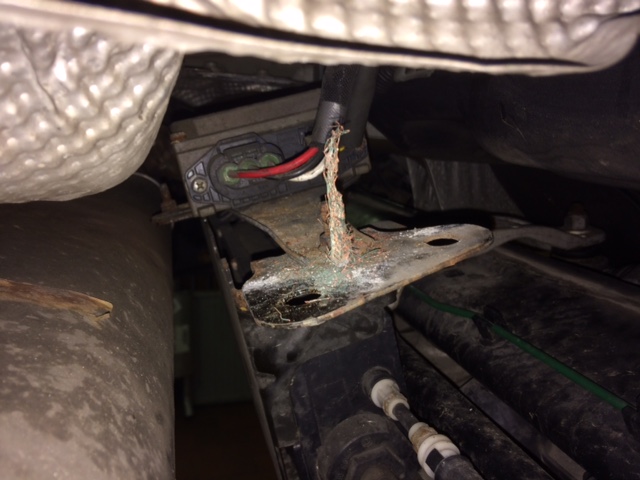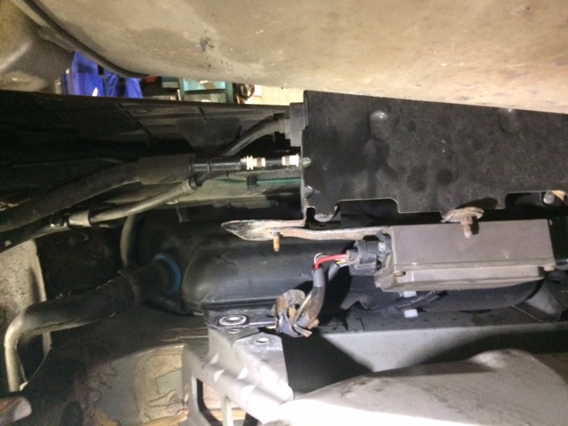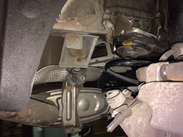 Ich hab dann nicht den Tank, sondern dem Endschalldämpfer und das Hitzeschutzblech demontiert und den Halter der elektrischen Handbremse gelöst (an dem ist das Kabel angeschraubt).