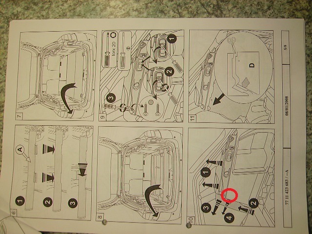 irgendwie verstehe ich die Franzmänner nicht. Nachdem ich das Trennnetz wie in dem "Bilderbuch" (der Anleitung) gezeigt angebracht (geschraubt habe), soll ich jetzt auch irgendwie die rechte Seitenverkleidung im Gepäckraum lösen.