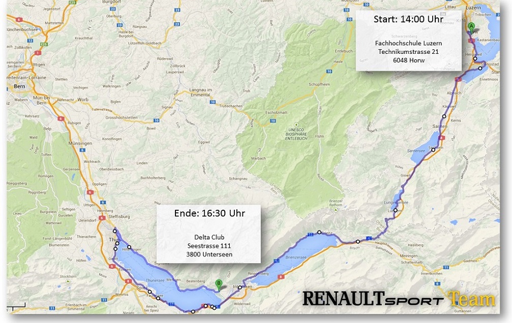 Via: Sarnen - Brünigpass - Interlaken - Spiez - Thun - Hilterfingen - Gunten - Merligen