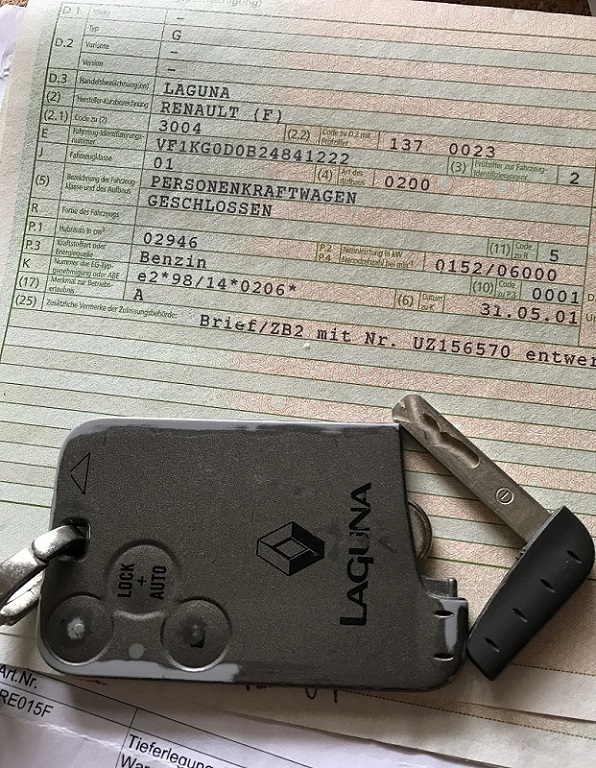 er steht an einer straße und ich muss ihn da ohne "großen" aufwand wegschaffen. es ist ein Laguna 2, GTyp 137-0023, Automatik. ez 05.2001. tüv hat er noch bis 01/18.