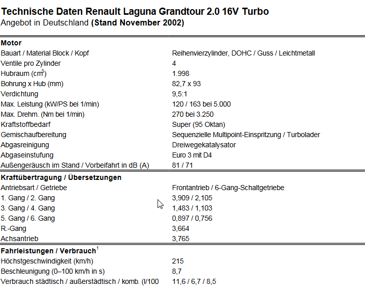 Anbei mal ein Vergleich zwischen Laguna Ph1 2.0T