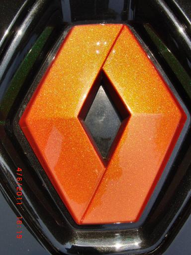 das Zeichen auf der Motorhaube läßt sich von innen abschrauben (Torx). Dann das Renault- Zeichen (Rhombe) an den Haltern vorsichtig von der Unterlage entfernen. Hinten läßt sich das Emblem einfach abhebeln. Aber Vorsicht- Kratzergefahr. Deshalb nur mit Plastickeil oder nicht kratzenden Werkzeug rangehen.
